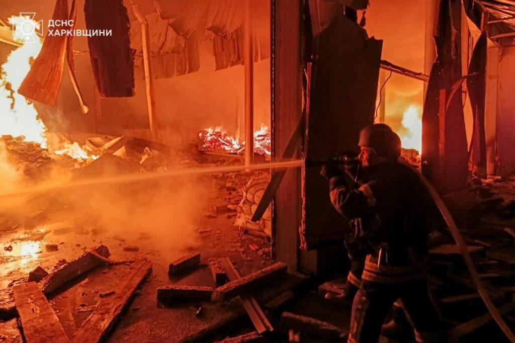 Унаслідок ворожого обстрілу зафіксовано близько шести влучань на території приватного підприємства. В результаті ударів сталося займання складу готової продукції – повідомили в поліції Харківської області.