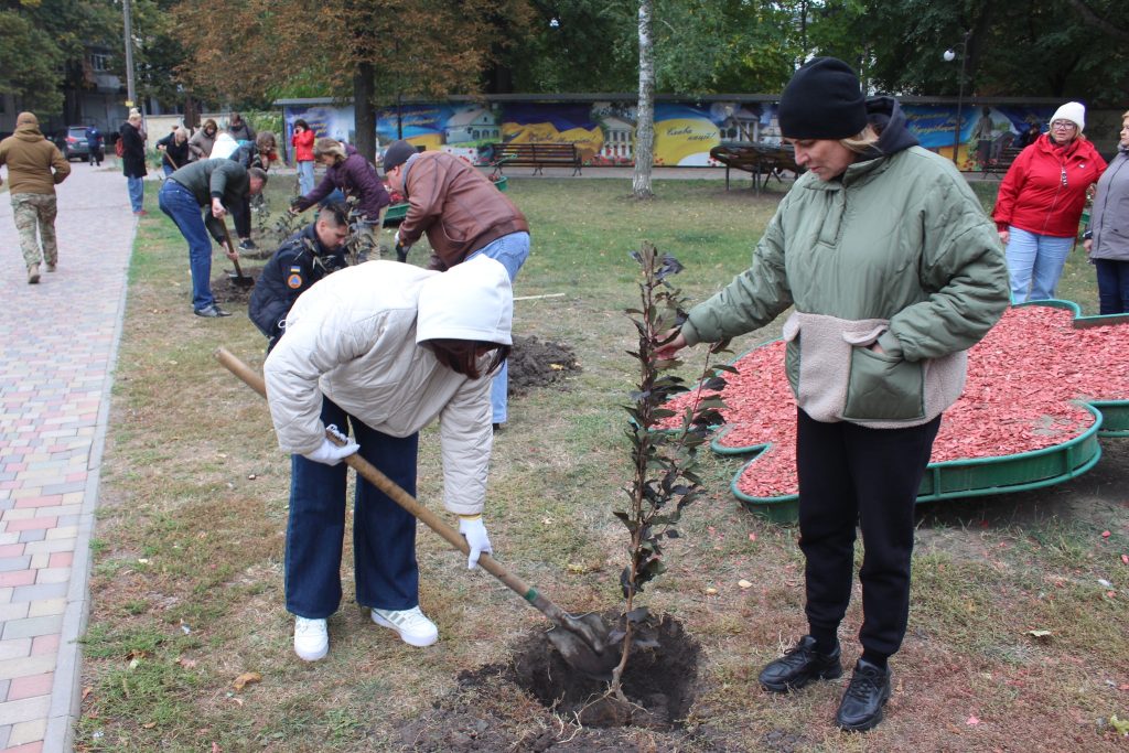 Кожен охочий міг долучитися до придбання та висадки саджанців сакури «Royal Burgundy» на честь наших захисників. В результаті за благодійні внески городян було придбано п’ятдесят саджанців і матеріал для огорожі.