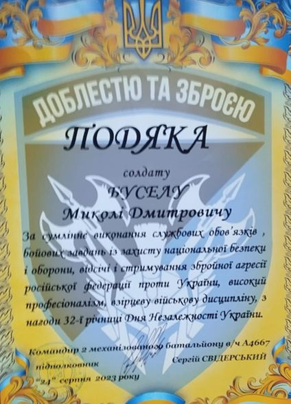21.11.2025 в селі Зарожне Чугуївської міської громади віддали шану та провели в останню путь полеглого воїна. Поховали Миколу Бусел на кладовищі села Зарожне, на малій батьківщині його дружини, поруч із тещою.