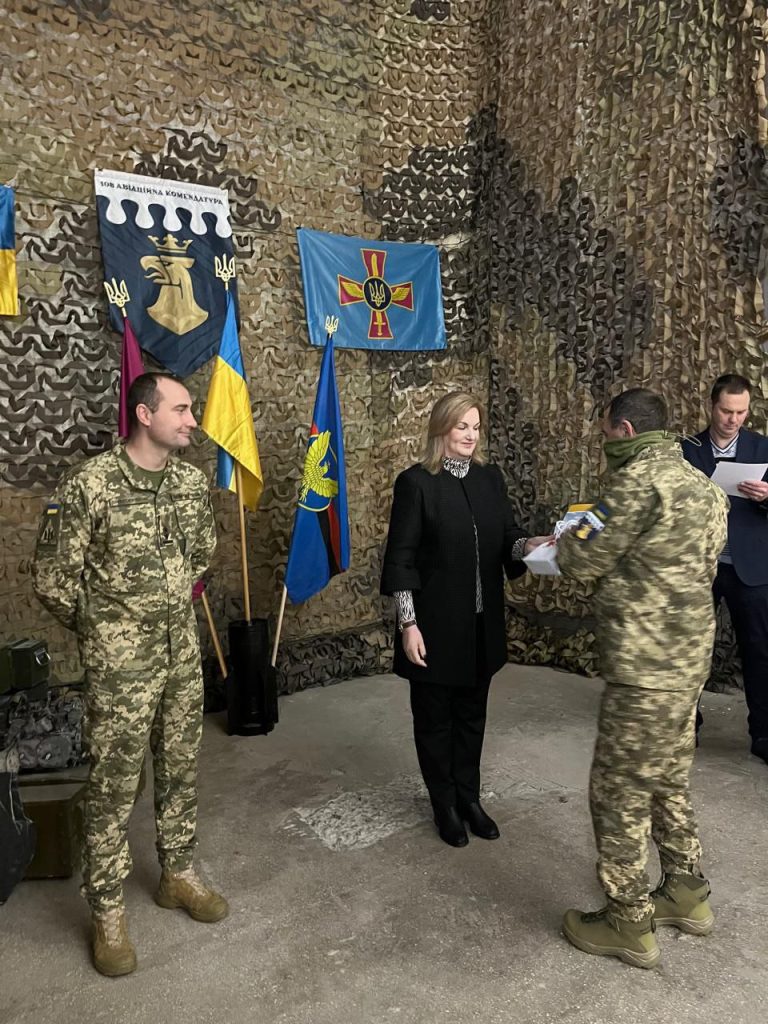 «Ми даруємо ці вкрай необхідні на фронті речі з вірою в те, що вони допоможуть зберегти життя нашим героям», – зазначила Галина Мінаєва.