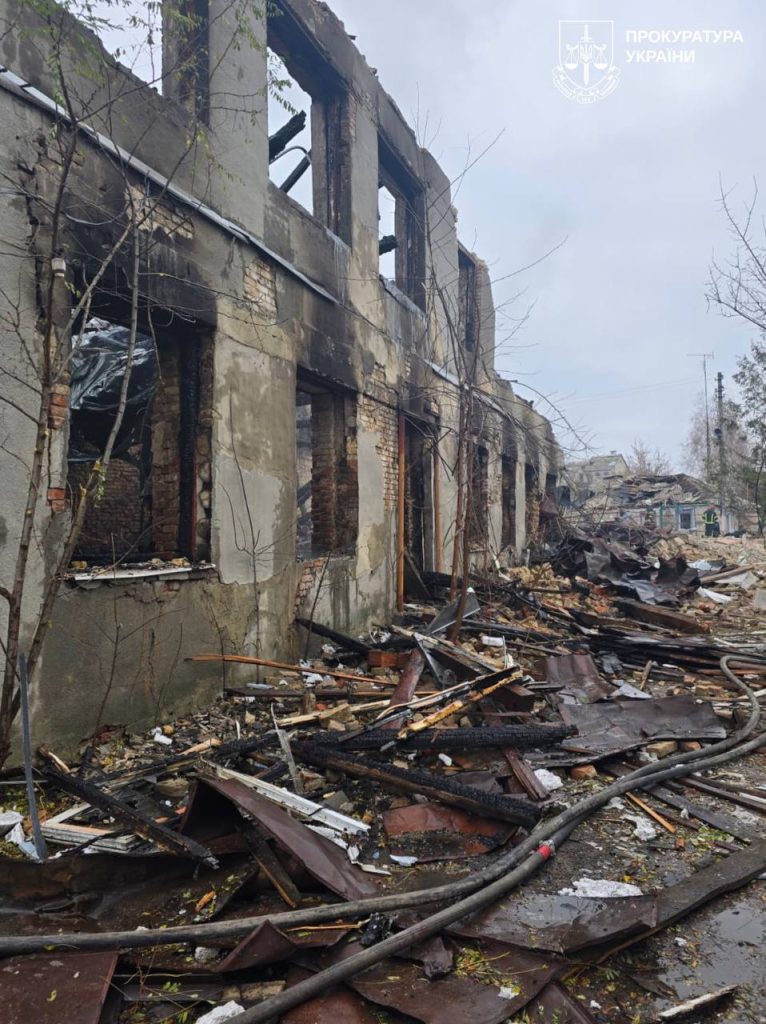 Пошкоджено будівлю освітнього закладу, відділення пошти, СТО, автомобілі та територію комунального підприємства.