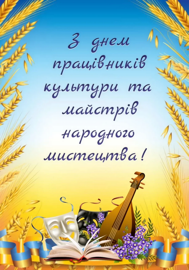 Щиро вітаю вас з Всеукраїнським днем працівників культури та майстрів народного мистецтва!