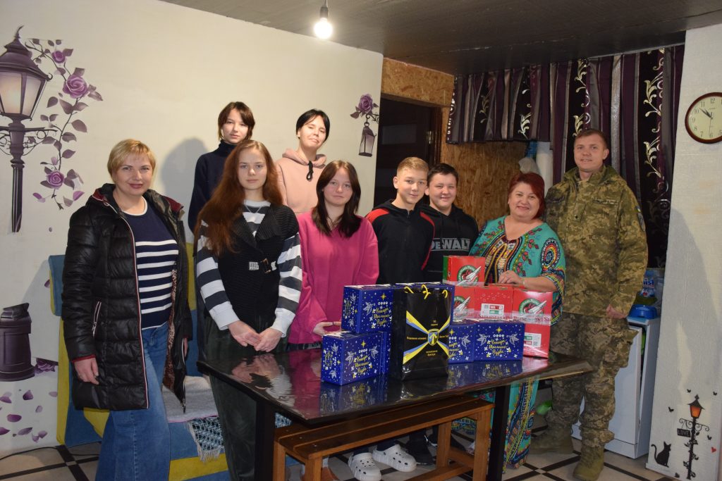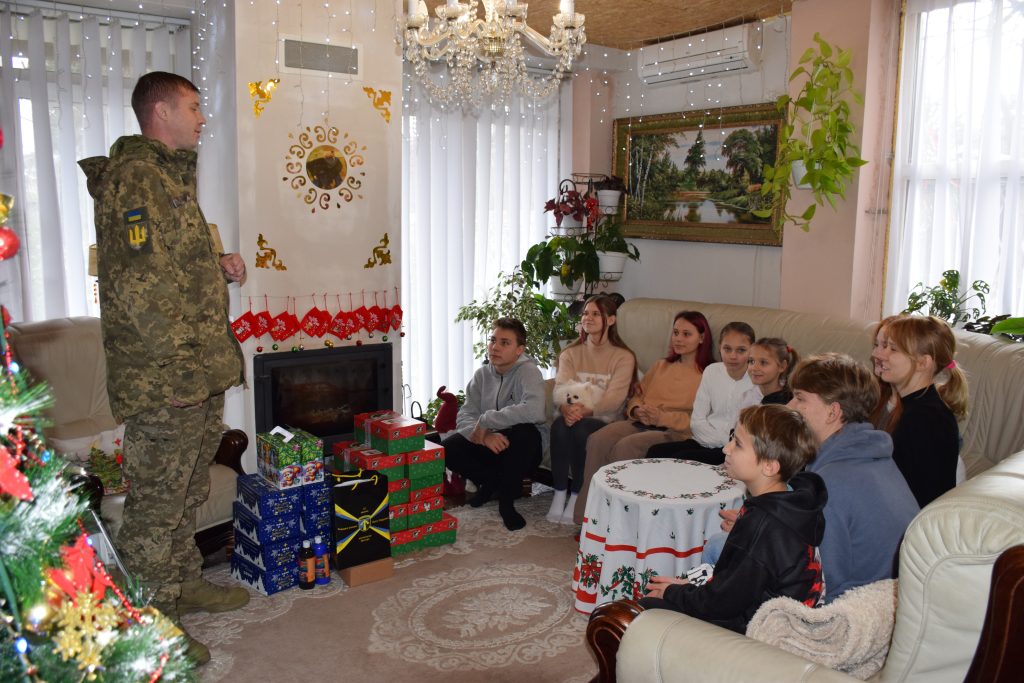До Дня Святого Миколая військовослужбовці 57-ї окремої мотопіхотної бригади імені кошового отамана Костя Гордієнка спільно зі Службою у справах дітей виконавчого комітету Чугуївської міської ради передали подарунки вихованцям чугуївських дитячих будинків сімейного типу Наталії Почекуніної та Інги Маринки і Олексія Гаркуші.