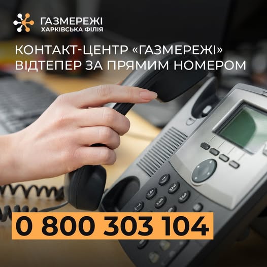 Мешканці Харківської області можуть зв’язатися з Харківською філією «Газмережі» за новим прямим номером Контакт-центру 0-800-303-104.